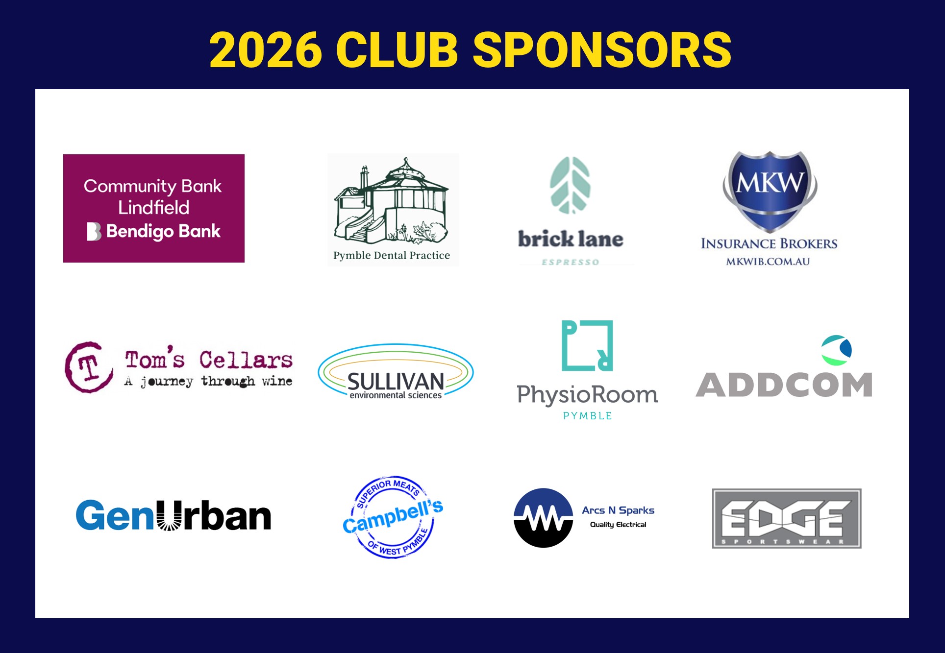 A big thank you to all of our 2026 Club Sponsors, and a warm welcome to new sponsor Addcom.
